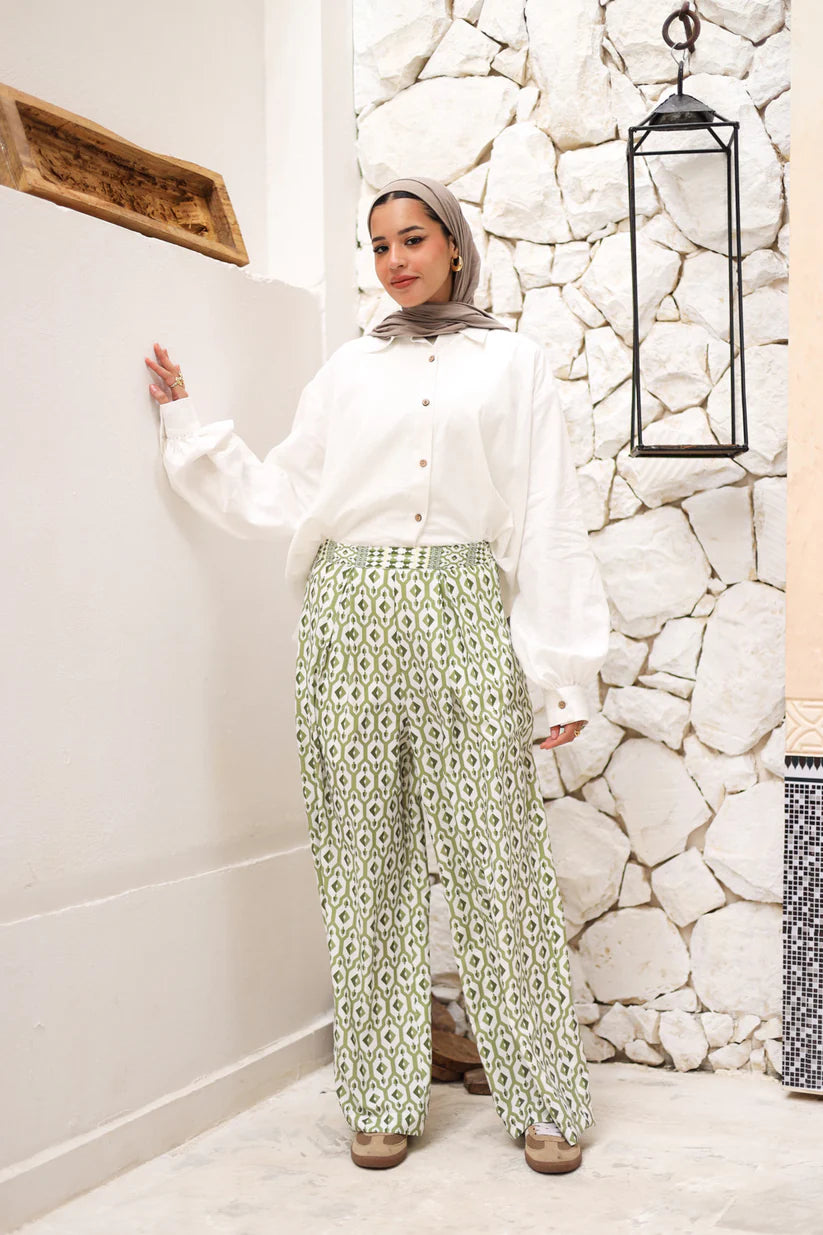 Arabisk Pants – Stylish, breathable, and perfect for summer. Made from high-quality imported crepe material, these pants are lightweight, non-transparent, and designed for ultimate comfort. The exclusive print design is specially crafted for SK, ensuring a unique and elegant touch. Elevate your wardrobe with the perfect blend of fashion and function!