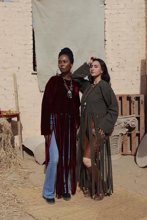 Boho fringe blouse long velvet fringe that looks cowboy, bohemian and elegant at the same time.