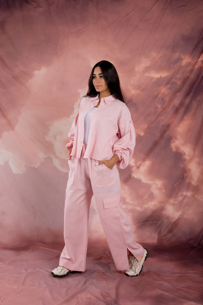 Comes in cropped chemise and cargo pants