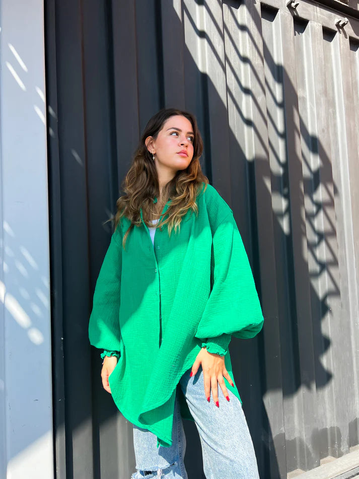 Details Crinky chemise can be styled in both ways opened or closed. Material is cotton Free size....