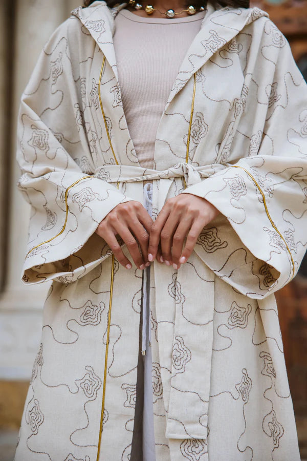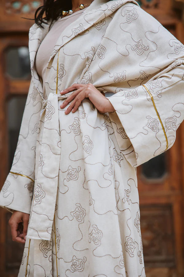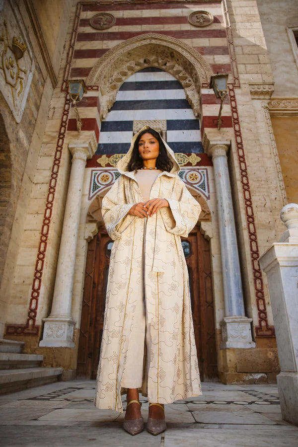 Elevate your wardrobe with this elegant embroidered kaftan, featuring intricate golden detailing and a flowing silhouette. Perfect for Ramadan gatherings or special occasions, this timeless piece blends tradition with modern sophistication