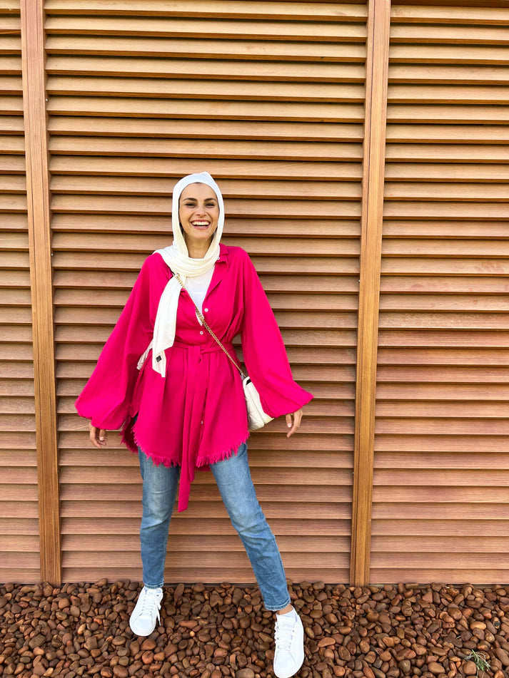 Details: Pure linen kokta chemise, comes with an external belt. Free size Material is very flowy, and...