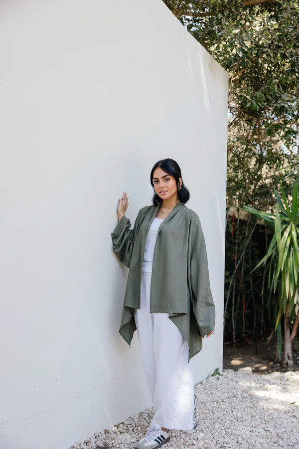 Wrap yourself in effortless elegance with this lightweight linen kimono—perfect for a breezy spring look.