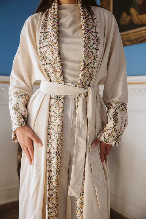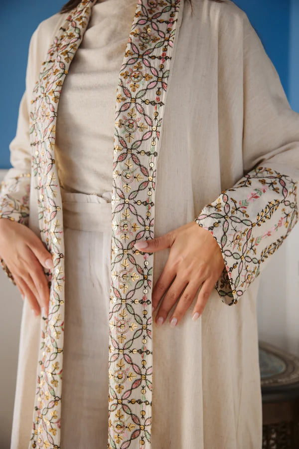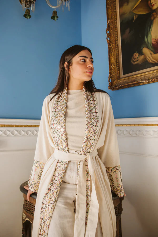 Make a statement with this exquisite Hindi kaftan, featuring intricate embroidery on a sleek black silhouette. Designed for elegance and comfort, it’s the perfect blend of tradition and modern sophistication.