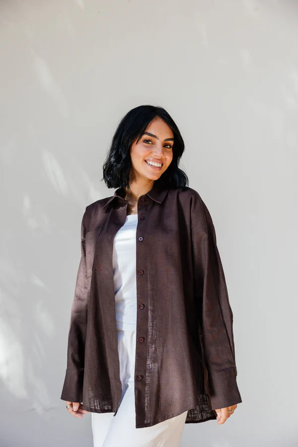 Breathable and chic, this linen shirt features a stylish side slit for effortless movement and elegance.