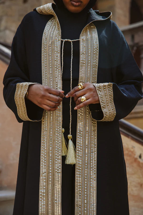 Experience the beauty of tradition with this Moroccan kaftan, designed with a flowing silhouette and timeless elegance. Perfect for special occasions and refined style