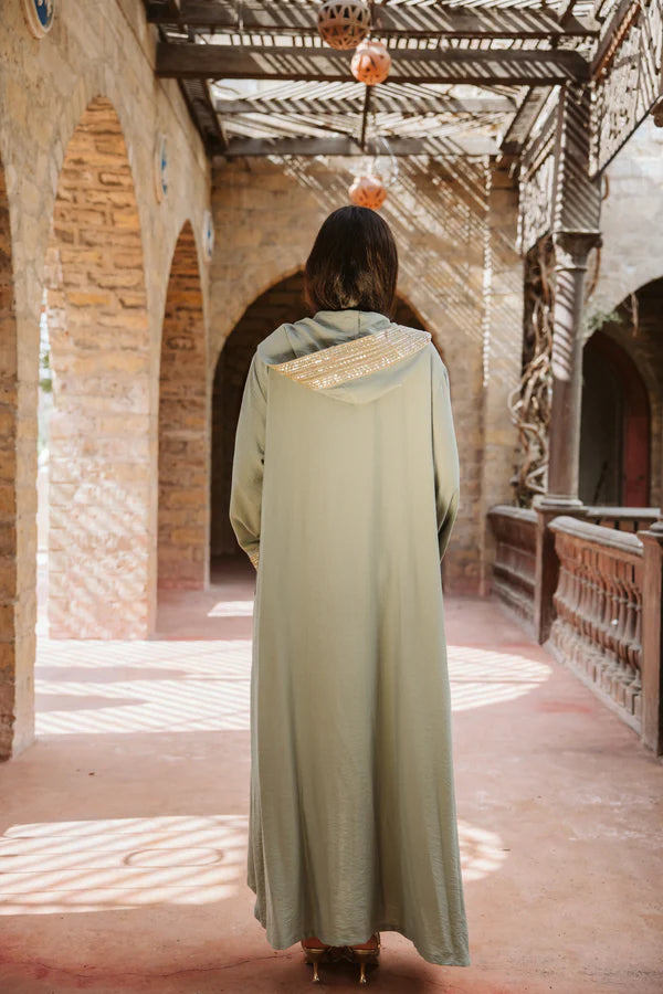 Experience the beauty of tradition with this Moroccan kaftan, designed with a flowing silhouette and timeless elegance. Perfect for special occasions and refined style