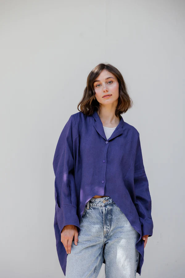 Lightweight and stylish, this high-low linen blouse offers effortless elegance for any occasion.