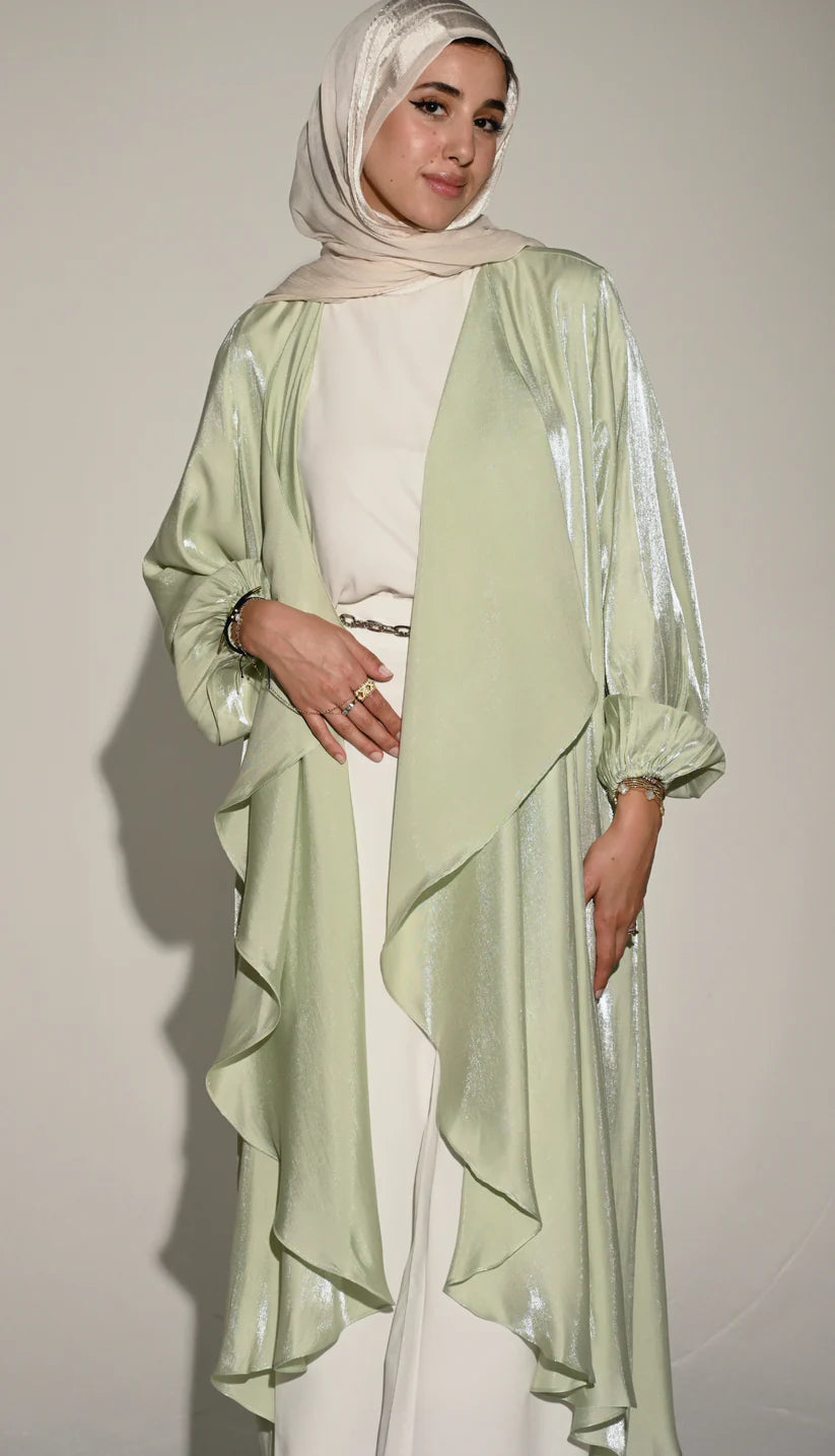 Elevate your style with Shimmer Emilia in Mint! This one-size garment is perfect for women who value simplicity and elegance.Add a touch of charm to any outfit with its subtle shimmer.