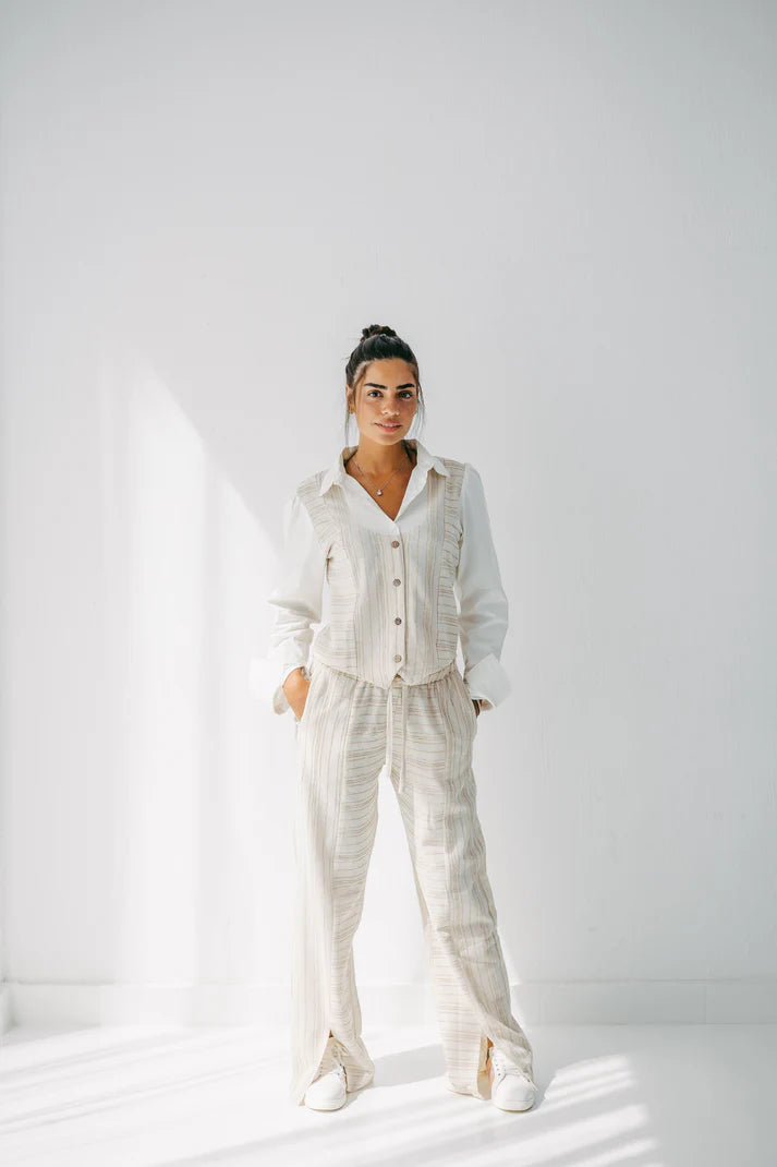 Our vest comes with an attached poplin chemise, comes in sizes SM and L XL